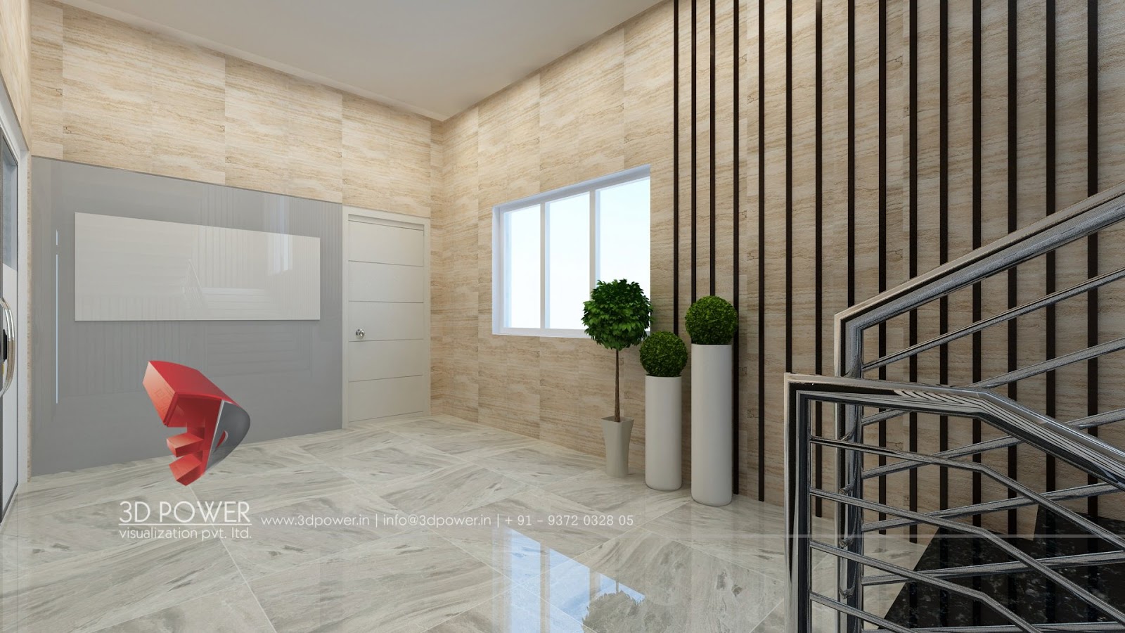 Attractive 3d rendering services interior of a hospital with awesome stairs & wall design